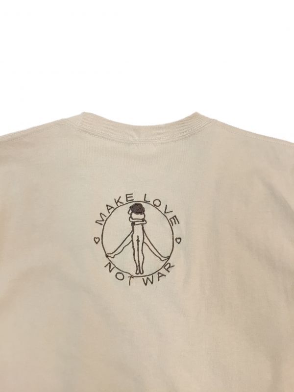 男女の裸体でピースマークを表現した落書きグラフィックを前後に刺繍されています。